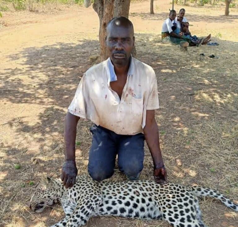 They found the lifeless leopard nearby and quickly escorted the injured headman back to the village, where he received medical attention.